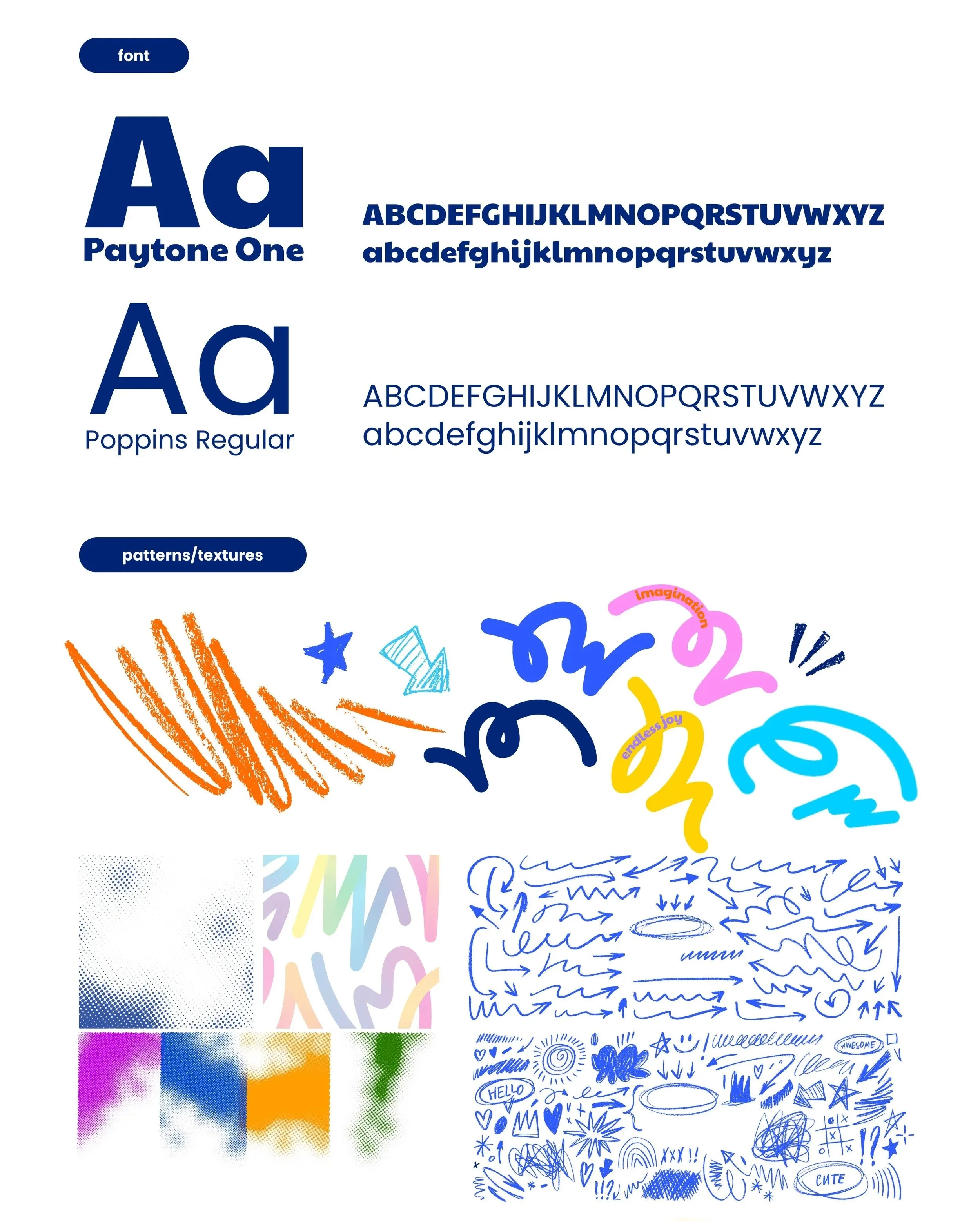 Texture was one of the earlier decisions in the system and one of the ones I feel strongest about. A scribbled, sketchy texture gives the colors and type fields depth and warmth. Without it, the identity risks being too clean and crafted which pulls away from the reality of childhood. It gives the brand a handmade quality that connects back to the illustration work throughout the system. It’s subtle enough that most people won’t consciously notice it, but they’ll feel the difference.