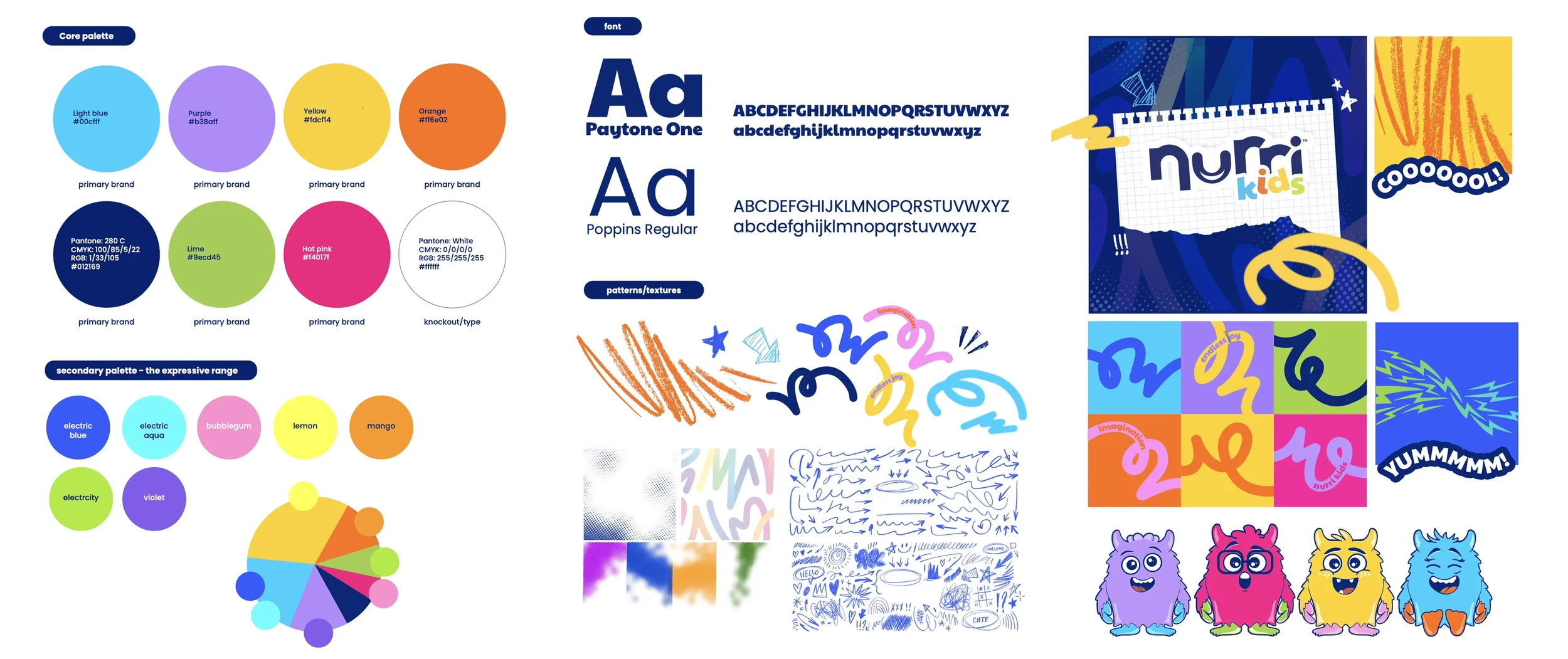 The identity system was built to work across packaging, digital, and any future extensions the brand grows into. To keep in line with its parent brand the Nurri Kids logo acts as its own entity with the adaption of “Kids” underneath it.