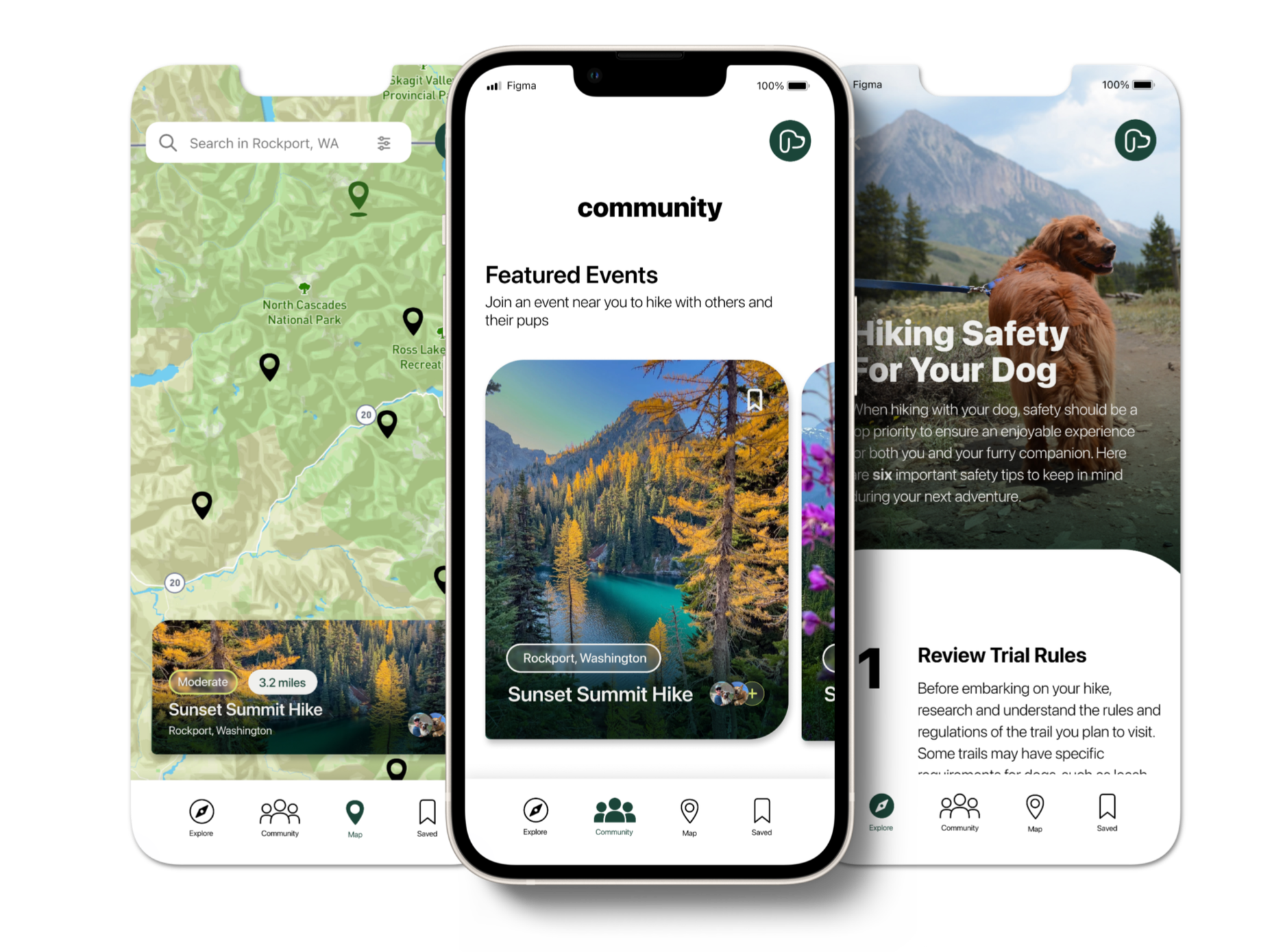 Unleash utilizes AI by generating trails that are well-suited for dogs based on the onboarding process. The type of breed, age and activity level help AI determine the range of trails suitable for your canine companion. Personalized trail recommendations curate the perfect hiking adventure for dogs and their owners. Whether dog owners are looking to build milage, get out and enjoy the weather or simply seeing the next best view, Unleash is here to support dogs in their next adventure.